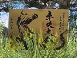 大仏様の足元に大型灯籠を設置し、芳名板と致しまして